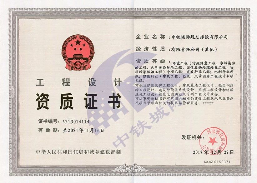 環保工程(污染修復工程、水污染防治工程、大氣污染防治工程、固體廢物處置工程、物理污染防治工程)專項乙級;市政行業乙級;水利行業丙級;建筑行業(建筑工程)乙級;風景園林工程設計專項乙級。