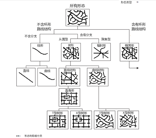 另一些分類法模式側(cè)重于城市街道的形態(tài)學(xué),馬歇爾在《街道與形態(tài)》里對此有詳細論述: