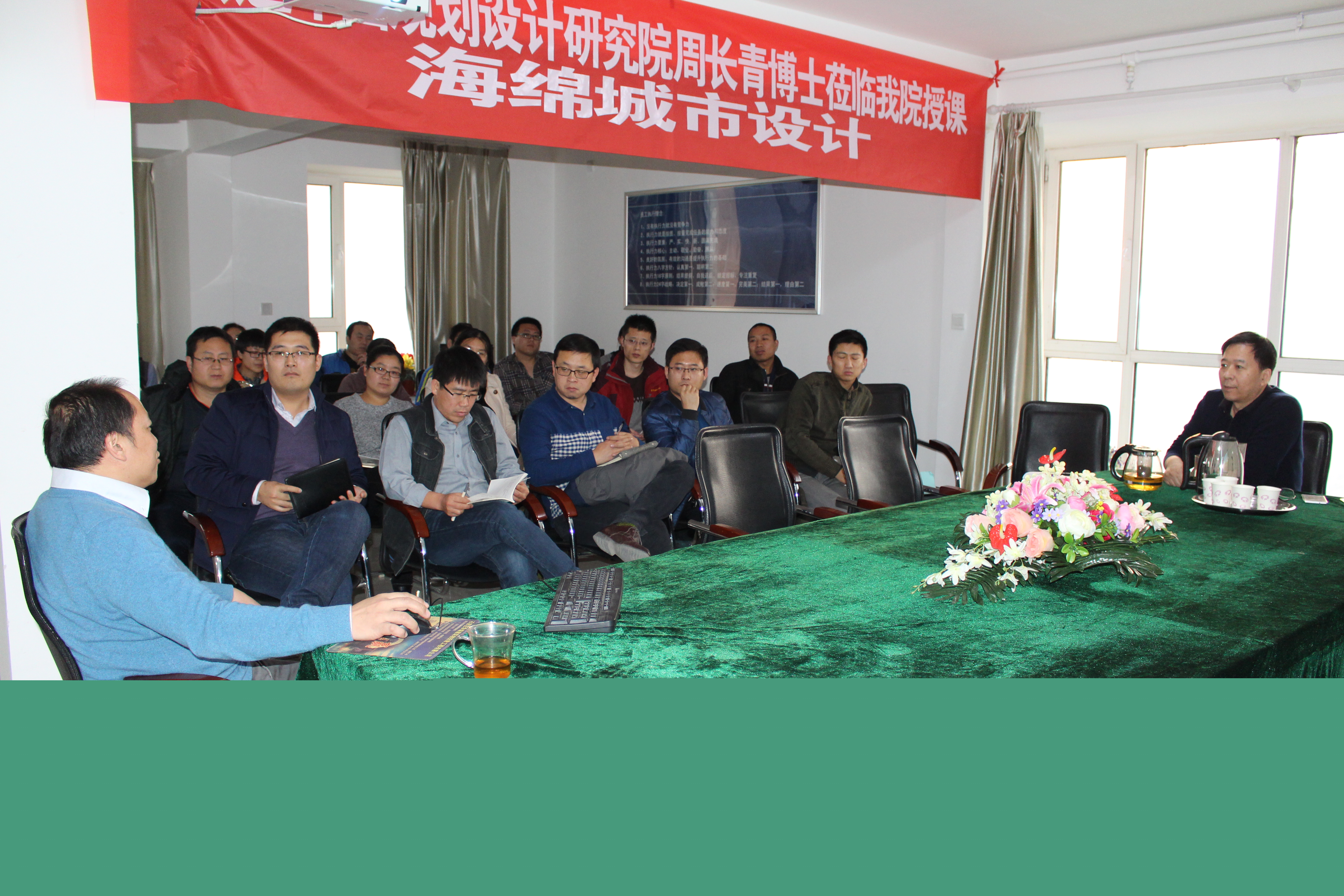 為積極響應政府號召,大力推廣海綿城市建設,提升公司規劃設計人員的創新意識,我公司于2016年11月27日,邀請中國城市規劃設計研究院周長青博士蒞臨我院授課,綜合設計處、規劃所及綠化設計所人員參加了此次培訓。