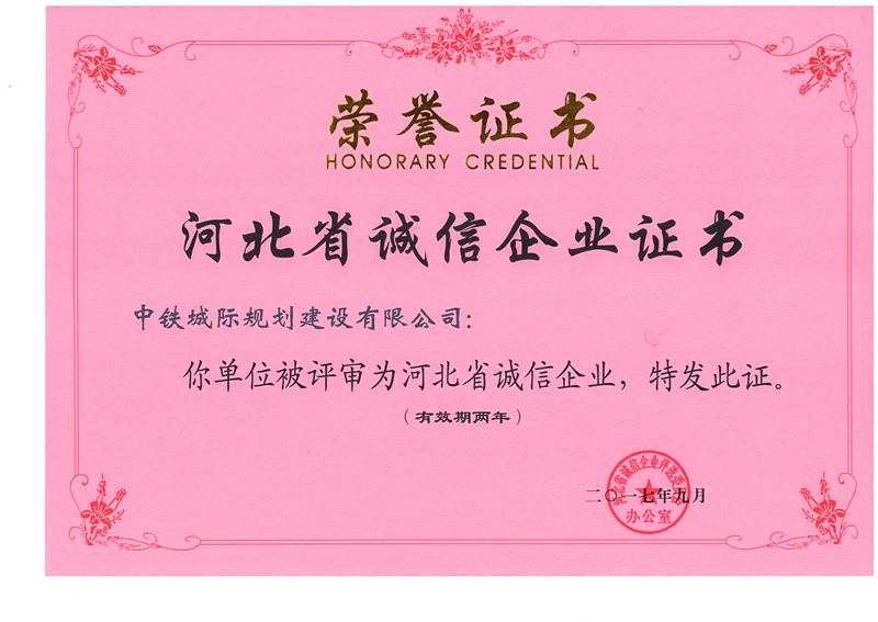中鐵城際|喜獲2017“河北省誠(chéng)信企業(yè)”殊榮