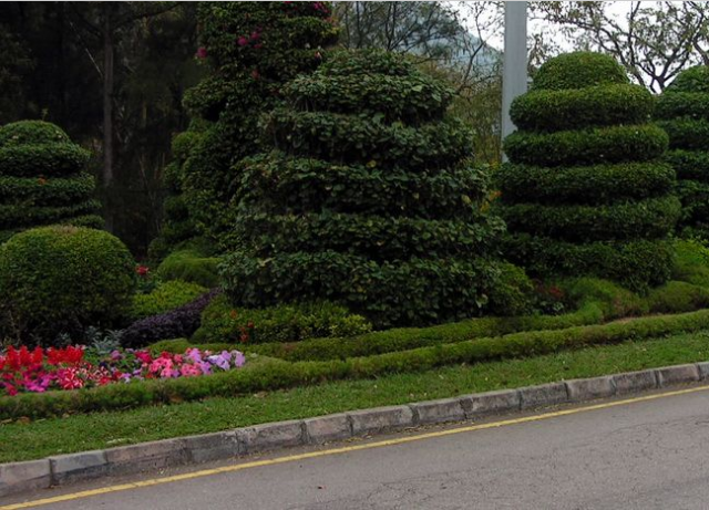 分隔帶綠化的主要功能是按不同的行駛方向分隔車道,防止車燈眩光干擾,減輕對開車輛接近時司機心理上的危險感,或因行車而引起的精神疲勞,引導(dǎo)視線和改善環(huán)境。中央分隔帶的設(shè)計,在增強交通功能并能夠持久穩(wěn)定方面,要求考慮通過常綠灌木實現(xiàn),選擇時應(yīng)重點考慮選用耐尾氣污染、生長健壯、慢生和耐修剪的灌木品種,一般可選用石楠、金葉女貞、紅花繼木、蜀檜柏、冬青等。在一些地段的分隔帶設(shè)計中,還可以組團式規(guī)則種植棕櫚、櫻花、西府海棠等特色小喬木來體現(xiàn)植物景觀的差異性。