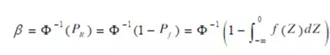 式中,Z為空間結構適用性的功能函數(shù),R為廣義抗力,S為效應??臻g結構的適用性可靠度指標β定義: