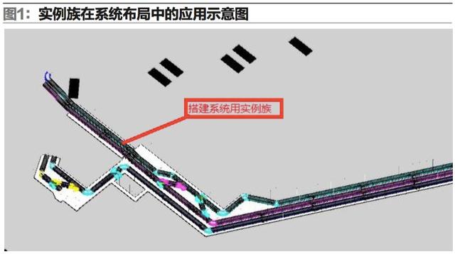 BIM技術軟件采用族模式管理,條理清晰,尤其參數(shù)族的應用使其模型建立、模型管理、系統(tǒng)模型搭建等事半功倍,一勞永逸。一旦系統(tǒng)所需固有族、參數(shù)族建立完成后,設計人員可在沒有局域網(wǎng)的數(shù)據(jù)系統(tǒng)下進行工作,提高了出差技術人員操作的便捷性。在自動化物流系統(tǒng)方案設計初期,可利用參數(shù)族所生成的實例族模型,進行整體系統(tǒng)布局信息化模型的快速搭建(如圖1),為后續(xù)工作埋下伏筆。并且,此信息化系統(tǒng)模型可進行三維渲染,給業(yè)主更為直觀的宣傳介紹,有助于提升中標幾率。