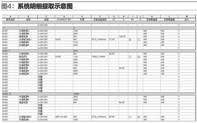而在BIM技術軟件的應用中,僅通過其中的一款Revit軟件便能減輕設計人員的工作量,且能快速提取設計所傳遞的相關信息,即在平面布局完成的同時便可提取相關零部件的參數(shù)及數(shù)量信息(如圖4),便于快速生產(chǎn)的組織;同時,提高了各工程材料預算的準確性,減少冗余采購量,節(jié)省資金。