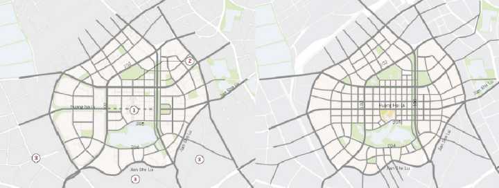 且不說標題的錯誤,街道和道路本來就是兩個意思,而其實他想表達的意思是道路。切割城市的道路也要看區域,看尺度,一味否定絕對不是正確的觀點。而這樣的思考,多少年前,城市設計的實踐領域也早已出現。何況道路和人其實不是對立的(下圖來自[SOM][2008]武漢王家墩商務核心區設計規劃方案,比較城市設計前后的路網密度)