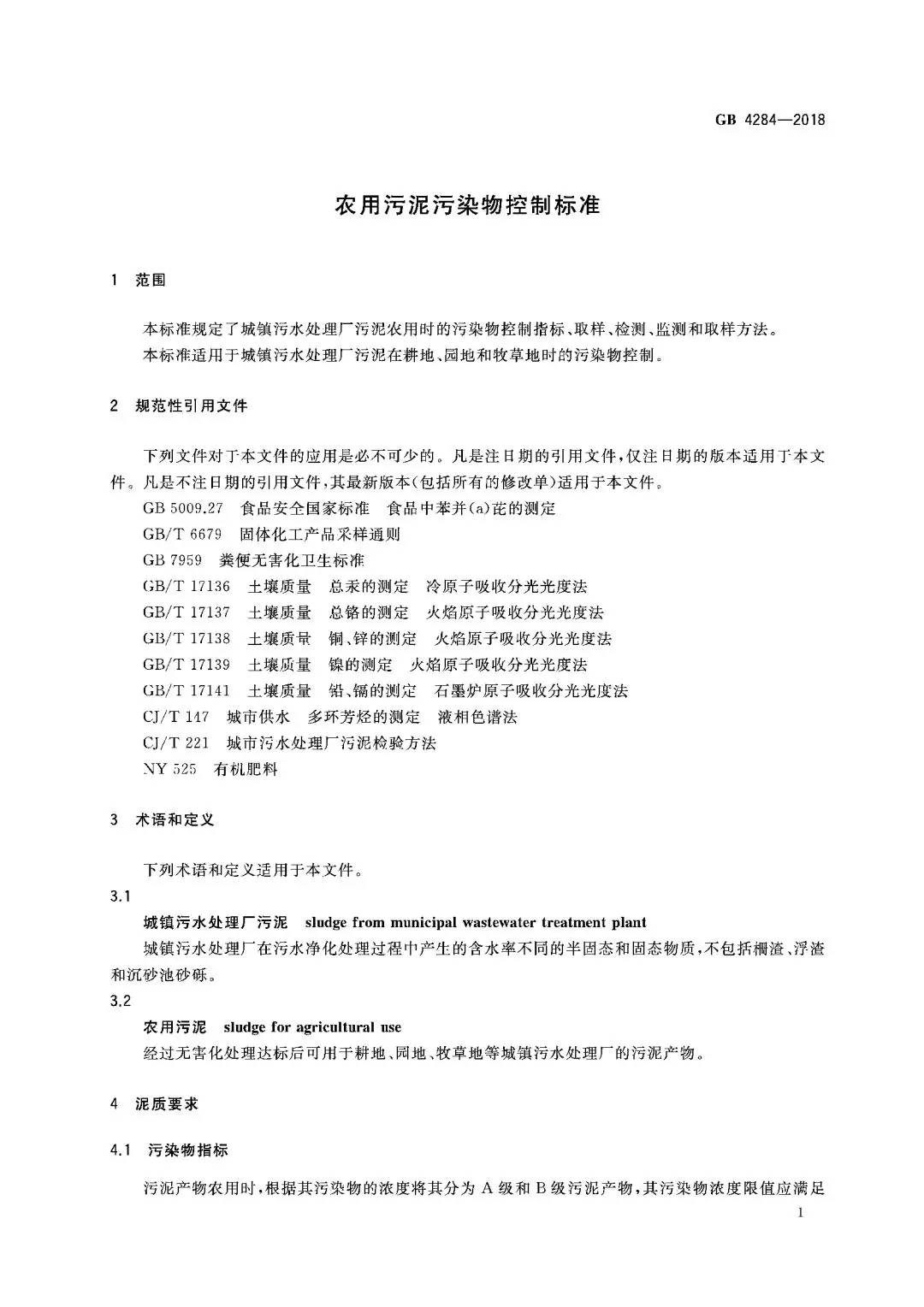 2、標準第1章“范圍”明確了該標準適用于城鎮(zhèn)污水處理廠污泥在耕地、園地和牧草地時的污染物控制。從字面上理解應該就是符合該標準要求的城鎮(zhèn)污水處理廠污泥是可以使用在耕地、園地和牧草地上面的。