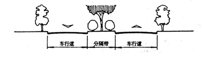 利用分隔帶隔離對向車流,將車道一分為二的橫斷面形式。