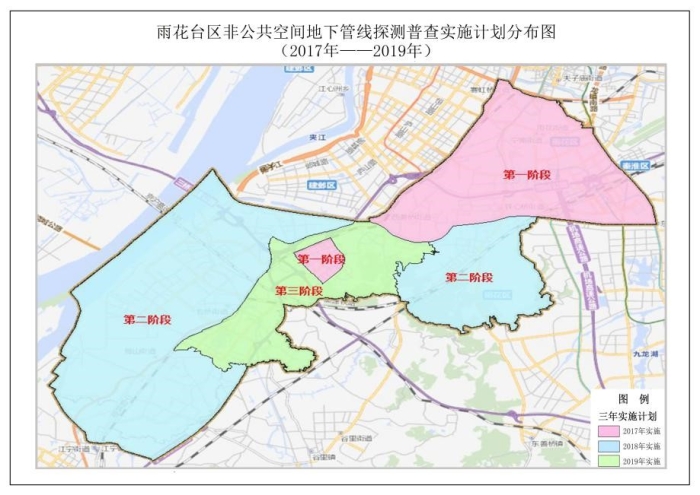 雨花臺(tái)區(qū)公共區(qū)域地下管線普查總長(zhǎng)為3705公里。非公共空間地下管線總長(zhǎng)度預(yù)估約為 4300 公里,于 2017 年 9 月啟動(dòng),分三年逐步實(shí)施,2019年12月底完成任務(wù)。