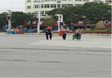 ?。ㄎ澹┬腥诵盘?hào)燈未開(kāi)啟,導(dǎo)致行人過(guò)街時(shí)與車(chē)輛沖突點(diǎn)增多,如圖-4所示。