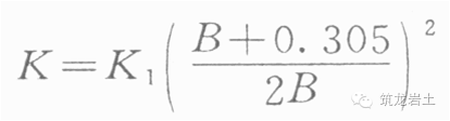式中 K1——是0.305m寬標準荷載板的標準基床系數(shù)或K30值。