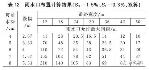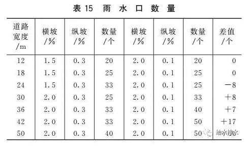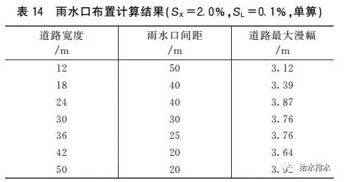 道路坡度調(diào)整表14為道路縱坡為0.1%時(shí)的雨水口最小布置間距(滿足表13漫幅要求)。
