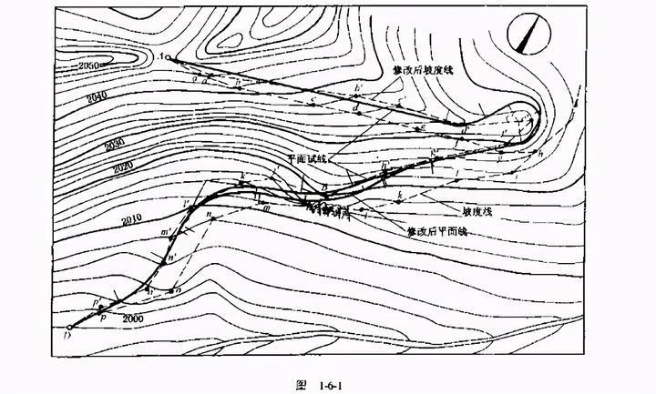 在大比例尺地形圖上,根據路線的起、終點和中間控制點,仔細分析控制點間的地形、地質及地物情況,選擇地勢平緩、山坡順直、河谷開闊及有利于回頭展線的地點等,擬定路線各種可能的走向,完成路線的總體布局。