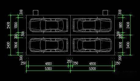 ● 90°直角停放時(shí)可以從兩個(gè)方向進(jìn)出車(chē),所用面積指標(biāo)最小,但需要較寬的行車(chē)通道,適用于大面積多跨的停車(chē)間。