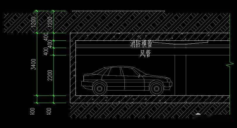 非人防普通車(chē)庫(kù)凈空高度不應(yīng)小于2.2m.