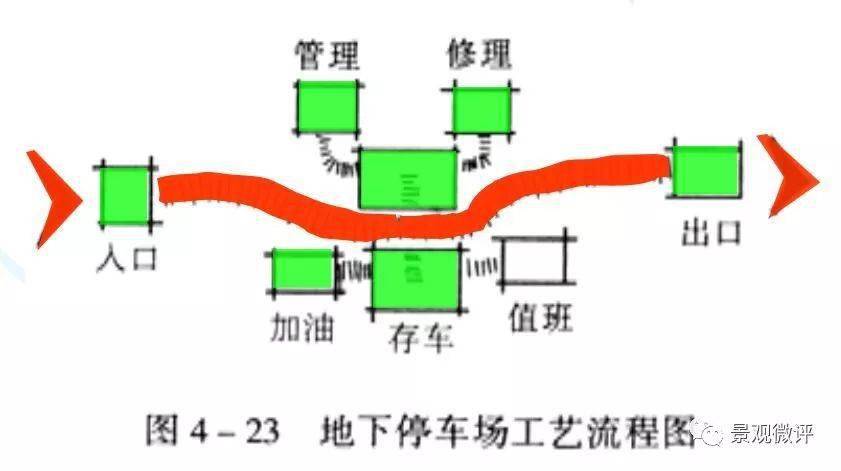 坡道與主體內(nèi)交通布置應(yīng)順暢,方向單一,流線清楚,出入口明顯。