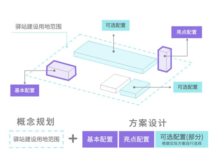 設計內容包含整體驛站的概念規劃及基本配置、亮點配置、可選配置的方案設計。