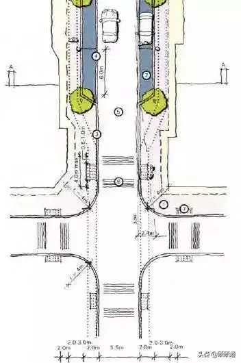 歐洲城市道路交叉口普遍采用較小的轉(zhuǎn)彎半徑,英國(guó)的《街道設(shè)計(jì)導(dǎo)則》明確提出城市道路交叉口轉(zhuǎn)彎半徑為4米。