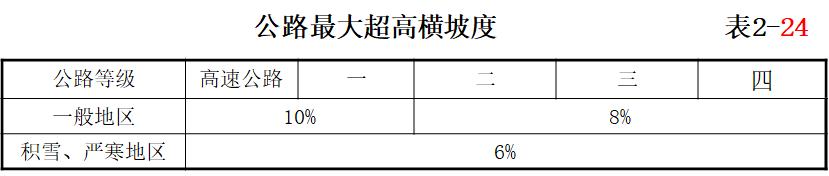 當曲線半徑小于表2-20或表2-23中規定的不設超高最小半徑時,均應設置超高