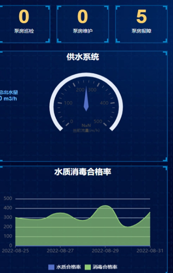 取水分析、消耗產出、水質分析、水壓分析、運營分析、設備統計